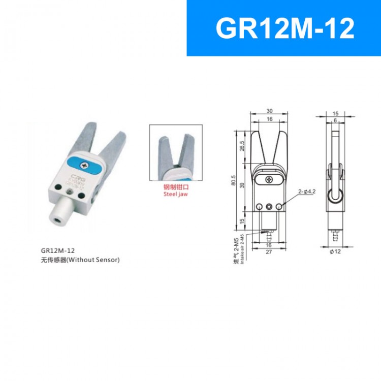 CRG GR12M-12 28N Mechanical Arm Mini Sprue Gripper Pneumatic Clamp without Sensor (Steel Jaw)