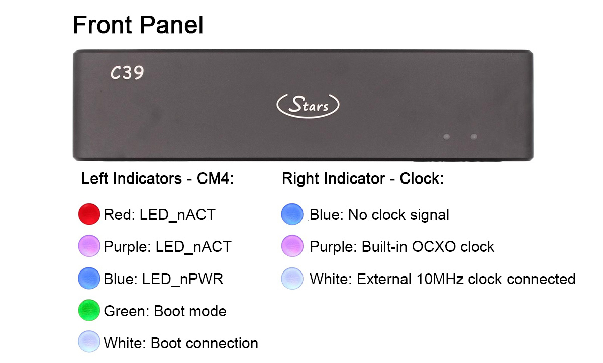- The C39 is equipped with two USB ports. The USB 2.0 port directly outputs high-quality native USB from the CM4 core CPU. The USB 3.0 port provides output through the high-fidelity PCIe-to-USB 3.0 chip, uPD720202. The uPD720202 is powered by a pure linear regulated power supply and enhanced with a synchronous clock, significantly improving its output quality.