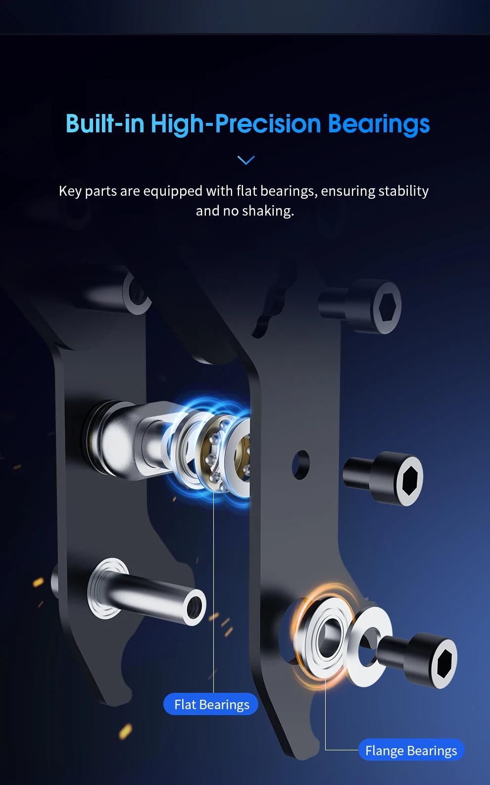 - Stable Bearing Support: Key components are equipped with flat bearings, ensuring stability with zero play for a more precise and responsive feel.