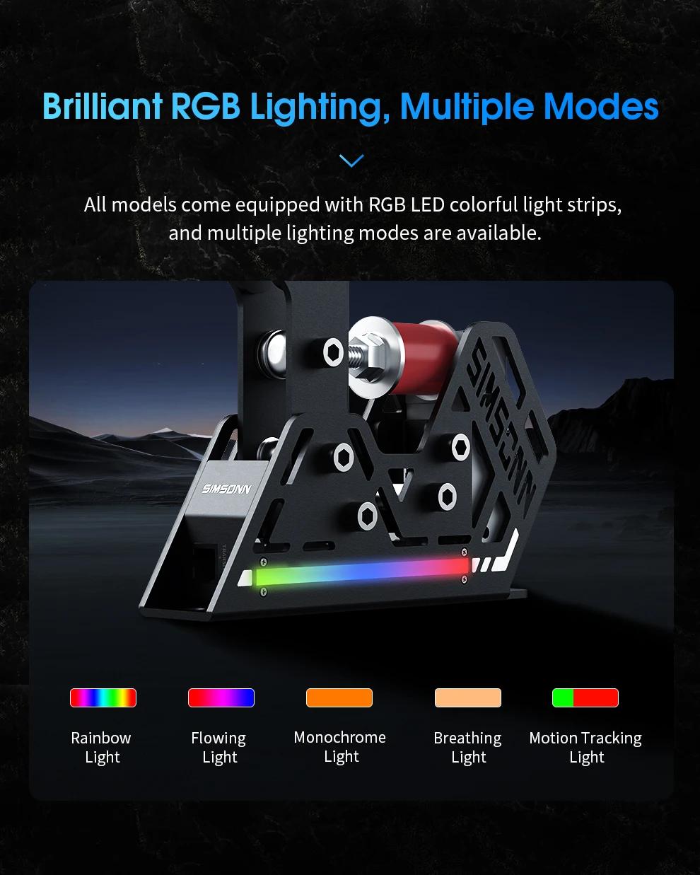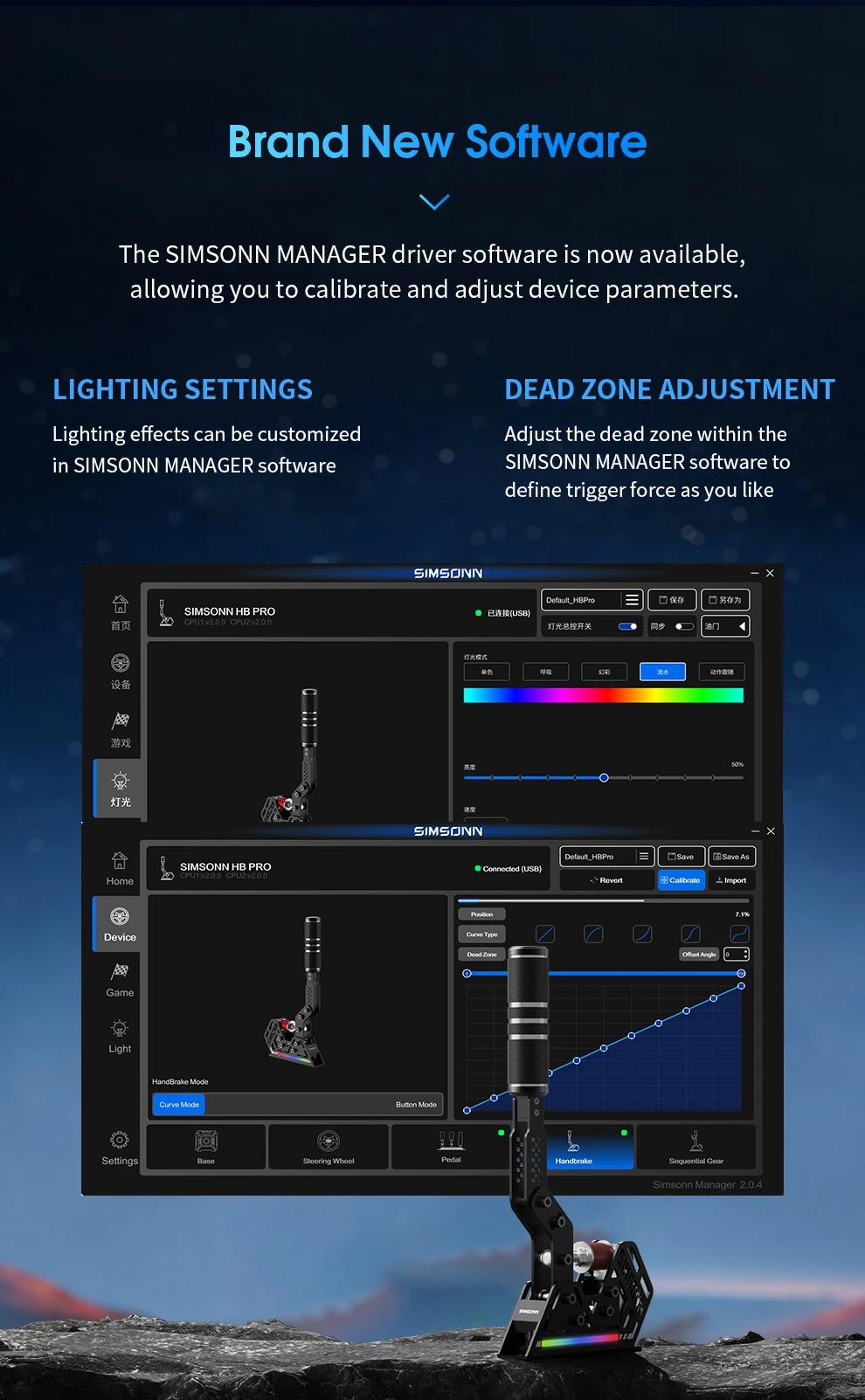 - Dynamic Lighting Effects: The RGB lighting supports dynamic display of handbrake pressure. Customize LED lighting effects via software for SIMSONN Manager, with support for synchronization across SIMSONN devices for an immersive racing experience.