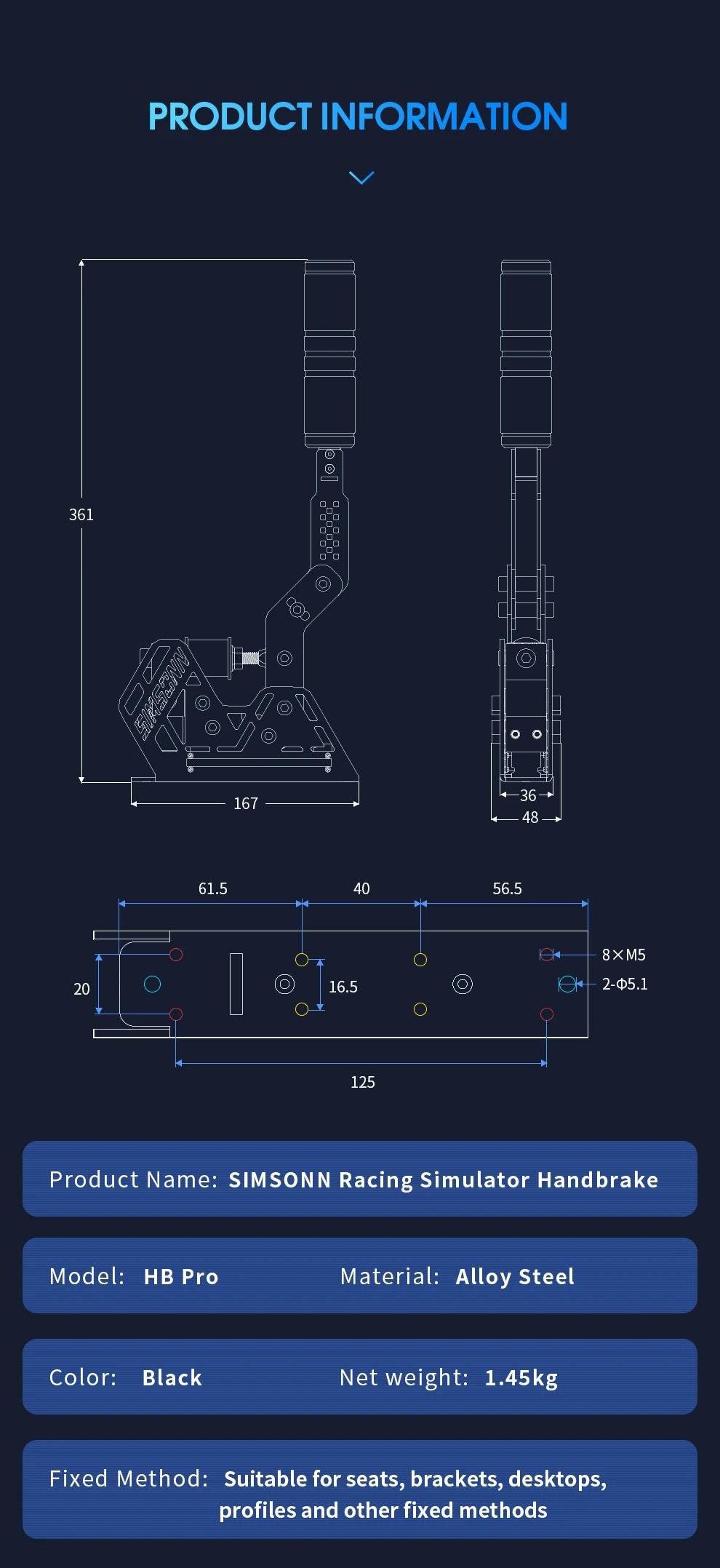- 16-bit High Precision Pressure Sensor: The SIMSONN HB handbrake is equipped with a 65536 PPR pressure sensor, accurately detecting pressure changes to perfectly simulate real-world handbrake operation.
