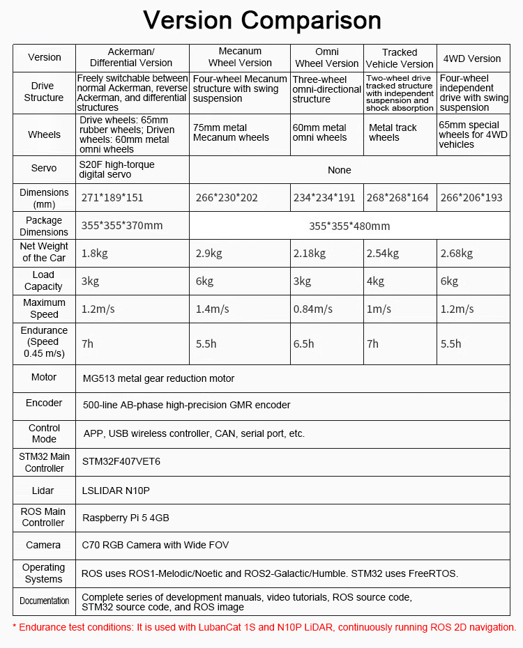 * The Raspberry Pi 5 (ROS main controller) supports the following system images: ROS1 Melodic and ROS2 Humble