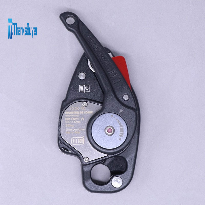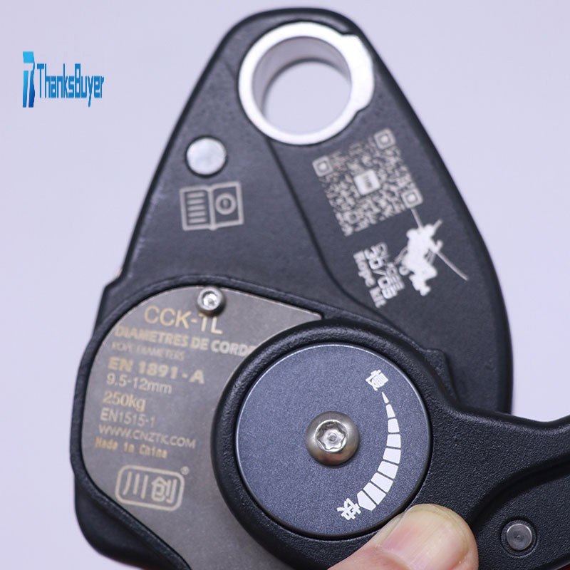 The CCK-TL Rope Descender is a robust climbing and rappelling device designed for ropes with diameters ranging from 9.5 to 12 mm (0.37–0.47 inches). It features three internal metal components crafted from special steel with a hardness rating of 38 to 42 HRC, ensuring exceptional durability and a long service life. The rope passage is meticulously finished for smoothness, minimizing any potential damage to the rope during use. Weighing 488 grams (1.08 lbs), this device supports a maximum working load of 250 kg (551 lbs). Constructed from high-strength aluminum and alloy steel, the CCK-TL offers reliable performance and safety for high-altitude operations.