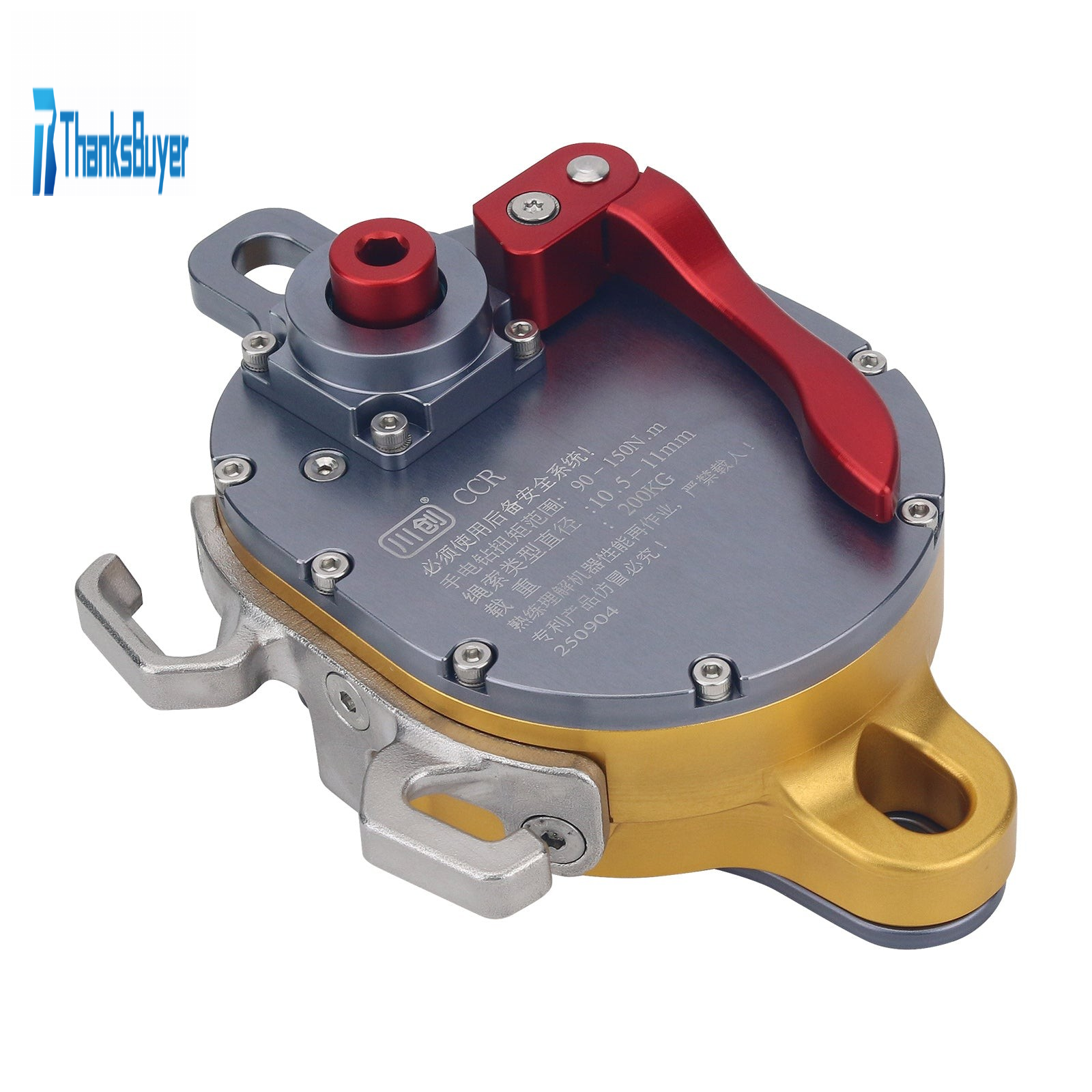 The CCD and CCR series are drill-powered rope control systems engineered for heavy-duty rigging and industrial rescue applications. Equipped with stainless steel sheaves and self-locking rollers, they are compatible with 10.5–11 mm static ropes. Each unit has a tested pull capacity of 510 kg (recommended working load: 200 kg) and complies with China's XF494-2004 fire rescue standard.