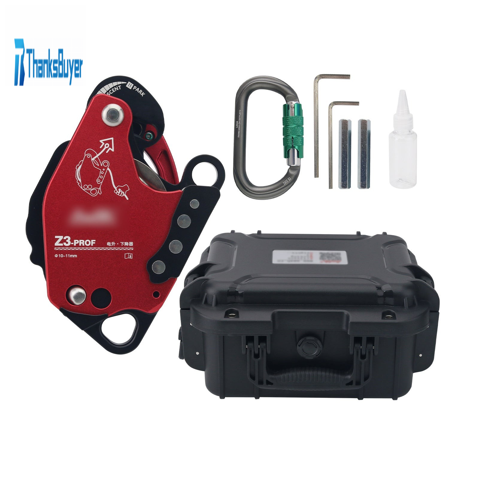 The Z3 series is an innovative electric ascent and descent device. Both the Z3 and Z2 series are powered by a drill. However, unlike the Z2, the Z3 employs a rope-clamping mechanism that provides smooth, impact-free lowering, similar to traditional descenders. The Z3 series also features a proprietary dual self-locking system—if the primary ratchet lock fails, a built-in backup system automatically engages during a fall, greatly enhancing safety.