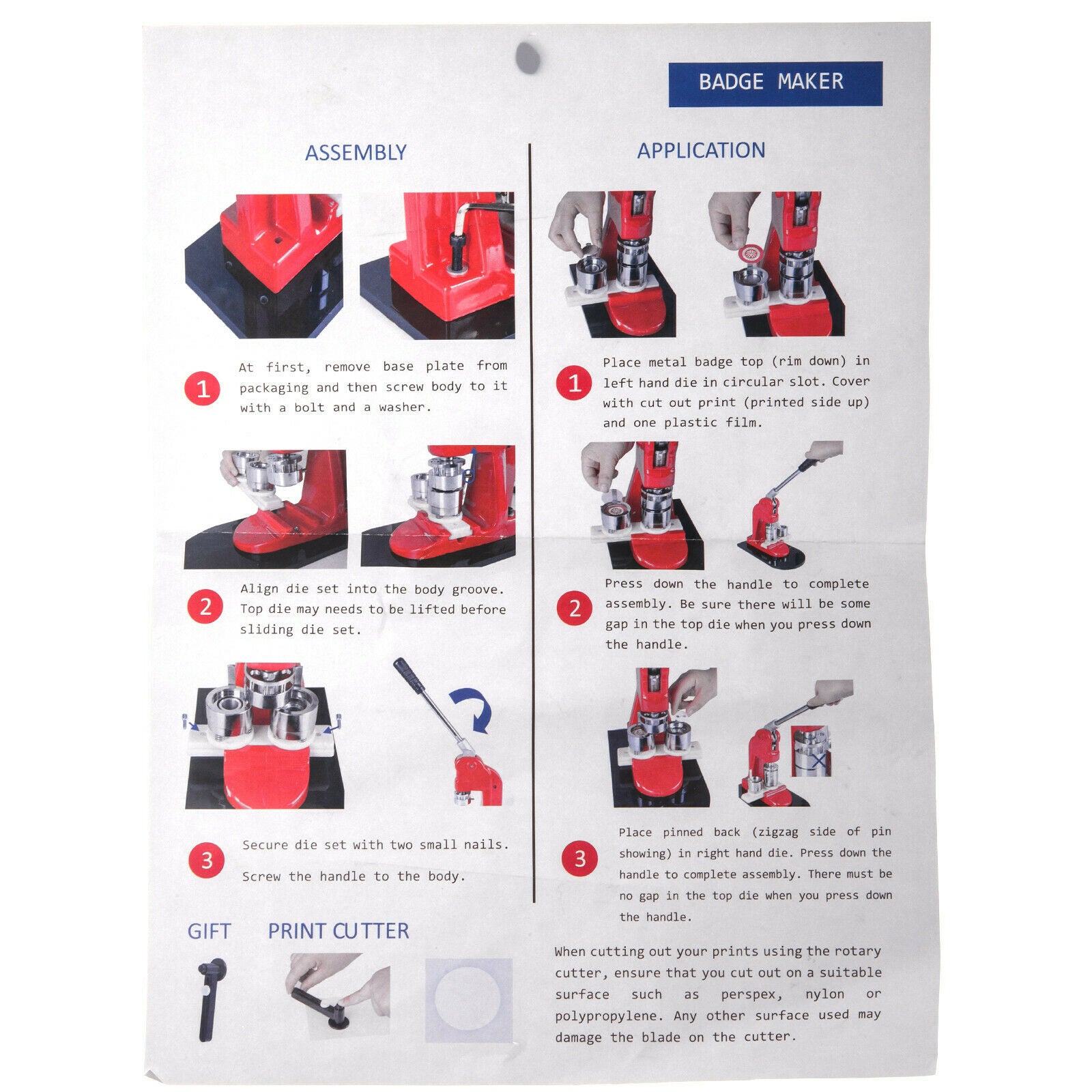 1.73'' Round Badge Machine Button Pin Maker Machine 44mm Button Press Maker DIY w/ 1000 Parts