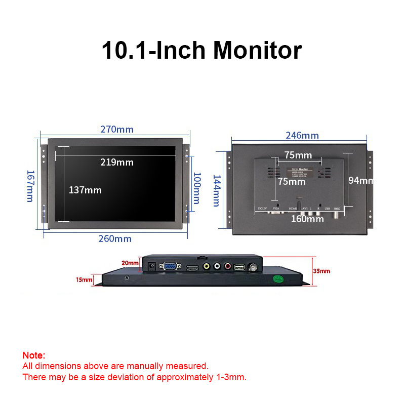10.1" 1280×800 Non-Touch Industrial Monitor Bracket-Mounted w/ BNC VGA AV HDMI-Compatible USB Ports