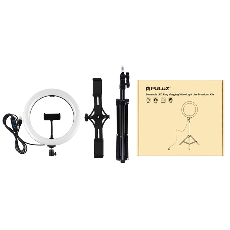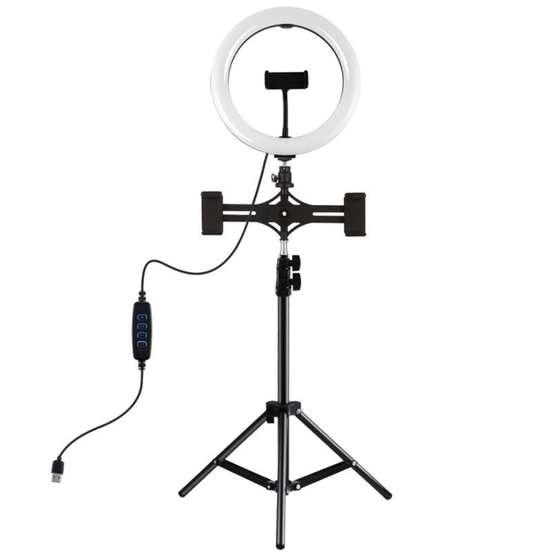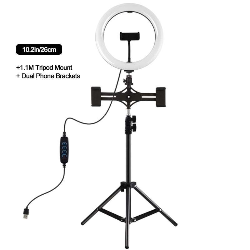 10.2" Dimmable LED Ring Light with 1.1m Tripod Stand Phone Clip For Two Mobile Phones PKT3070B