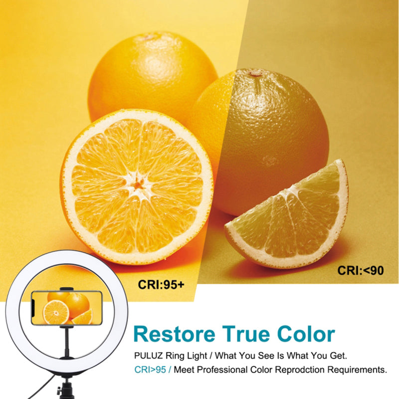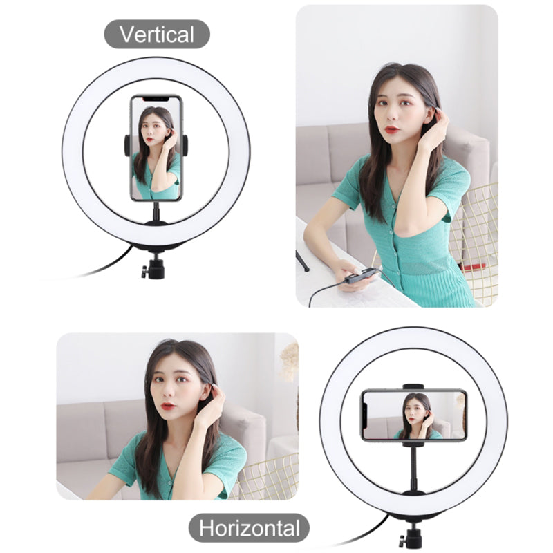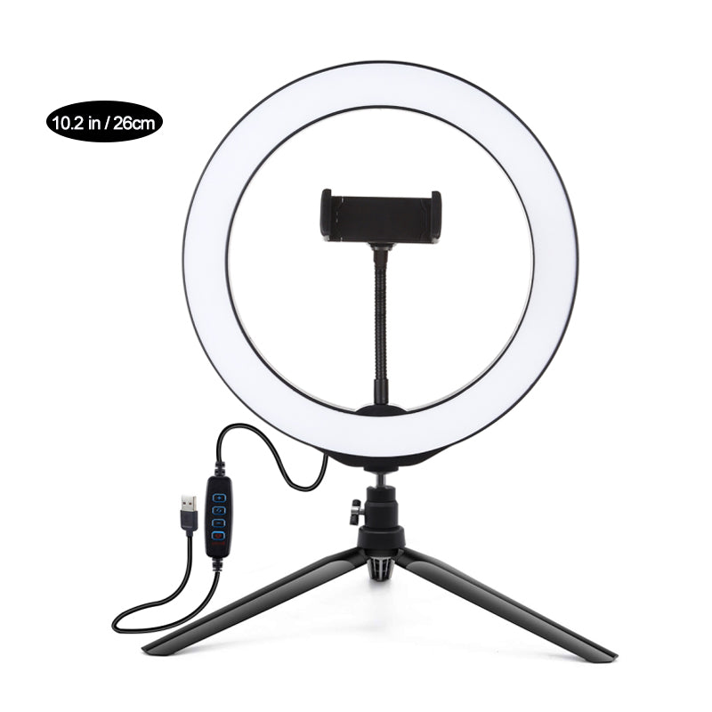 10.2" Dimmable LED Ring Light with Tripod Stand Phone Clip Vlogging Selfie Video Ring Light PKT3071B