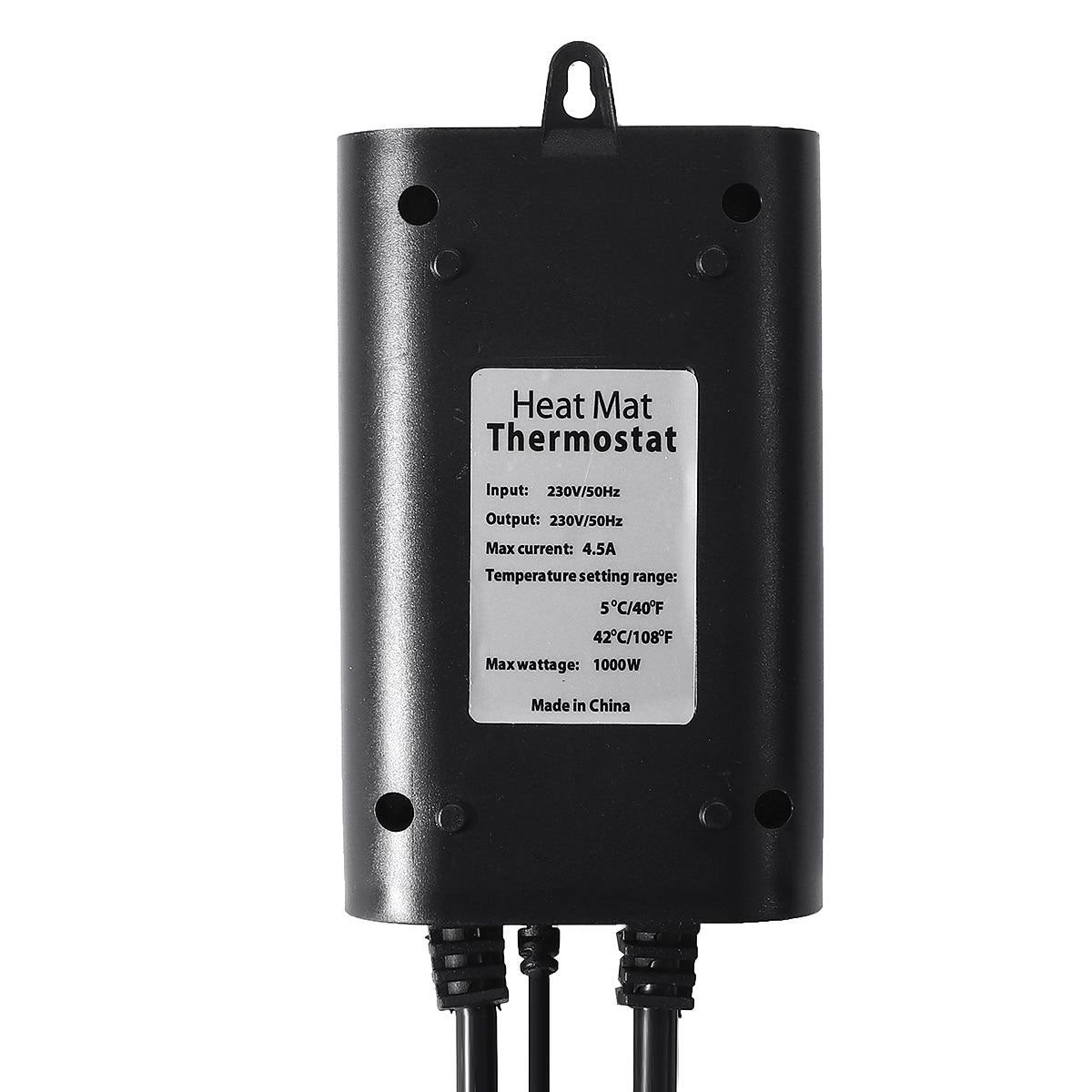 - Technical specifications: temperature control range is 40-108°F, temperature display range is 32 -140°F. Rated voltage is 230VAC 60Hz, max loading: 8.3A 1000W. Do not immerse controller or probe into water