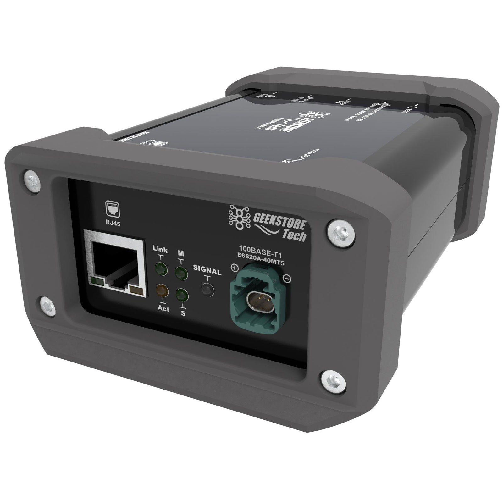- Conversion protocol: 100BASE-T1 two-wire automotive Ethernet / 100BASE-T RJ45 standard Ethernet