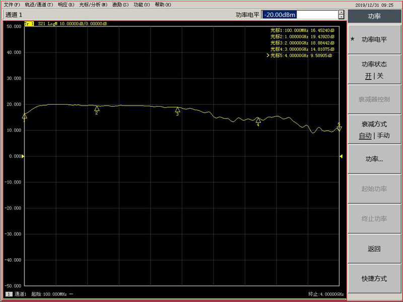 Program-controlled gain attenuator measured S21 parameters (20DB)
