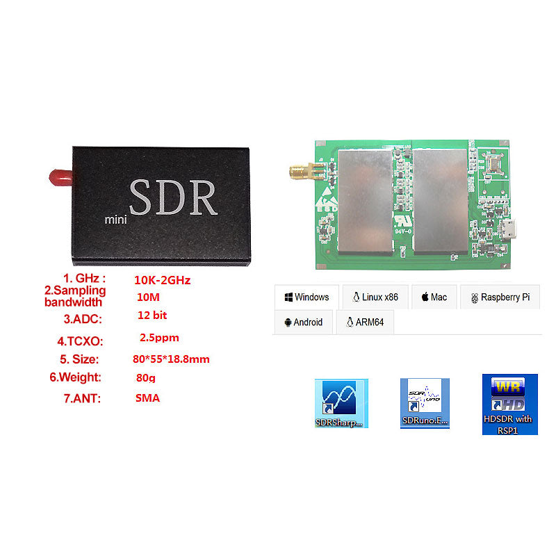- Support For: Windows, Linux x86, Mac, Raspberry Pi, Android, ARM64, SDRuno, HDSDR with RSP1, etc.