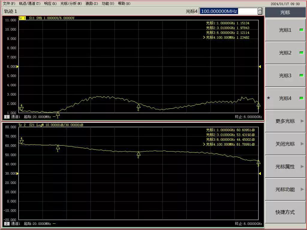 - P1dB = 18dBm at 2GHz, maximum input signal amplitude -35dBm, maximum output power < 100mW.