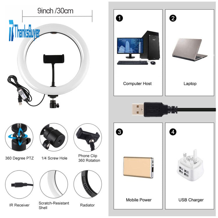 5. The USB ports can be used with multiple devices, such as connect computer host, laptop, mobile power and USB charger. You will be able to enjoy LED ring light at any time free.