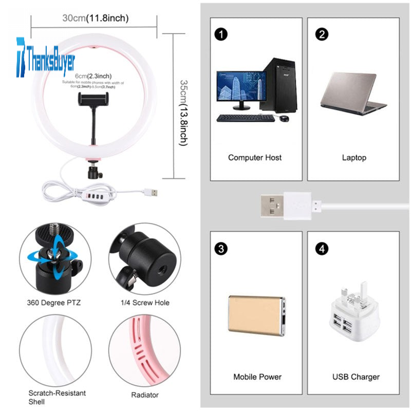 5. The USB ports can be used with multiple devices, such as connect computer host, laptop, mobile power and USB charger. You will be able to enjoy LED ring light at any time free.