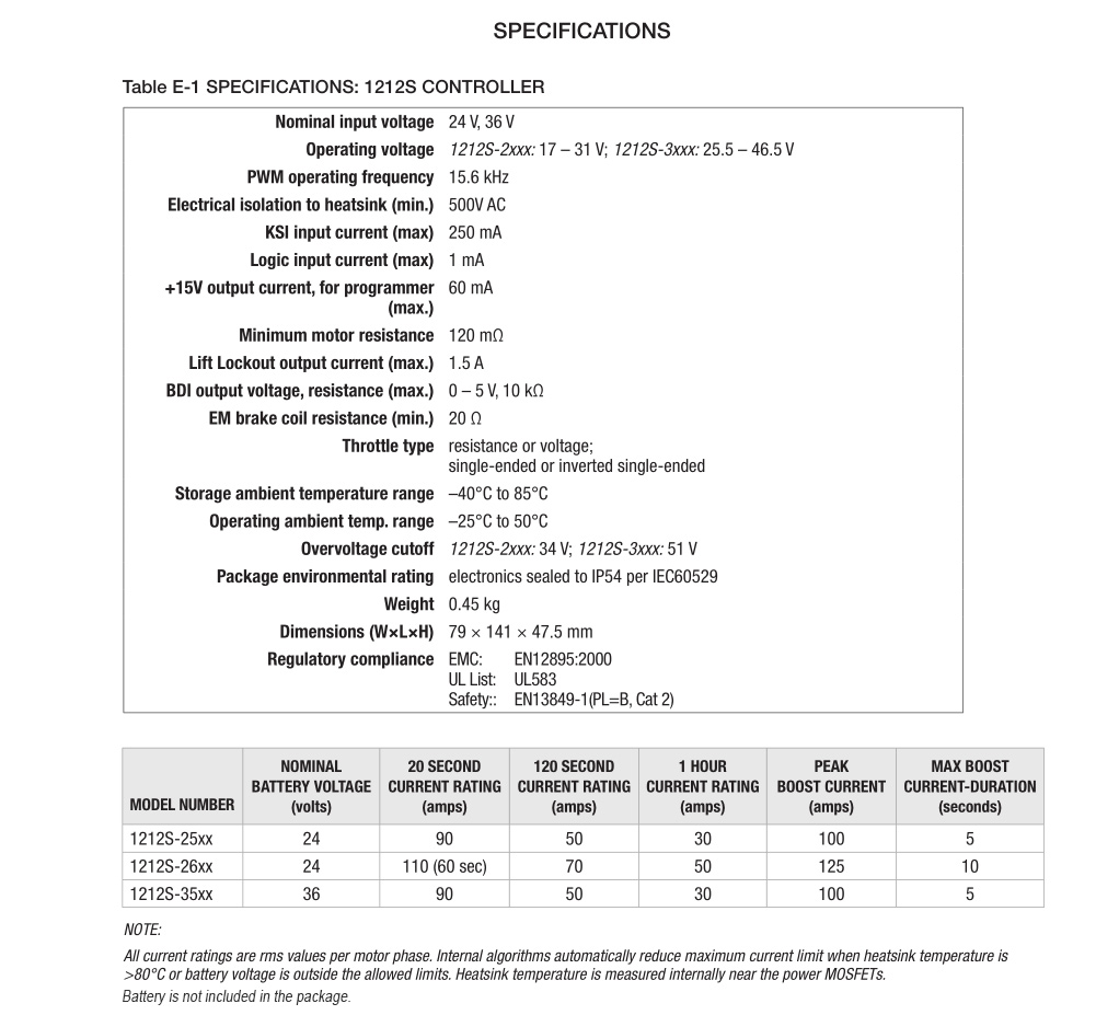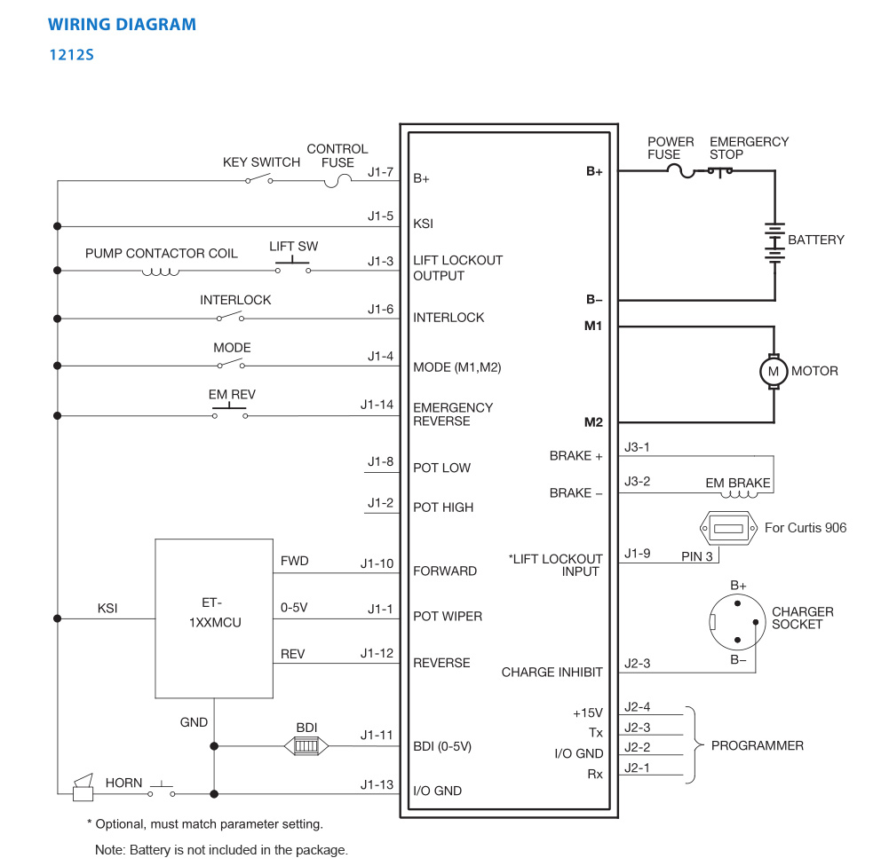 • 1212S controller is easily programmed with an original programming device for Curtis, or can be supplied pre-programmed