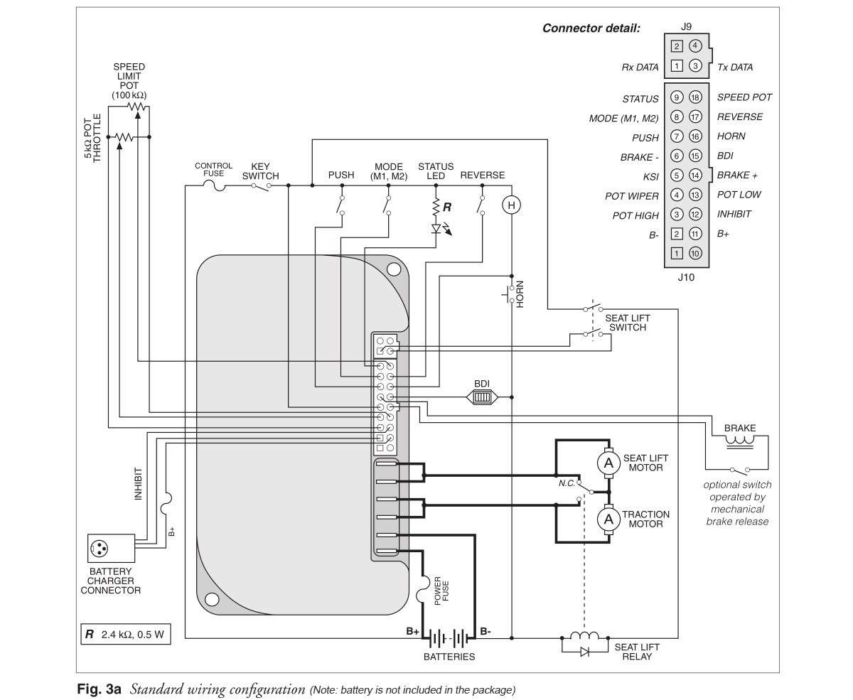 - ISO 7176 compliant throttle fault detection circuitry inhibits driving if throttle pot signal goes out of range for any reason