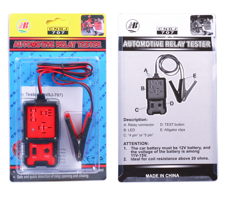 The relay tester can quickly detect whether your relay is normal. During tests, it needs to be connected to your car's 11V-15V battery. The tester will automatically detect pin position, the release time of action and the consistency of the relay in each test stage. When green LED light turns on, the relay is normal. If red light is on, it means abnormal.