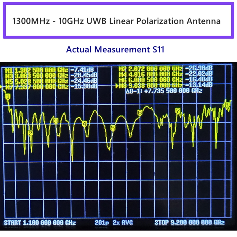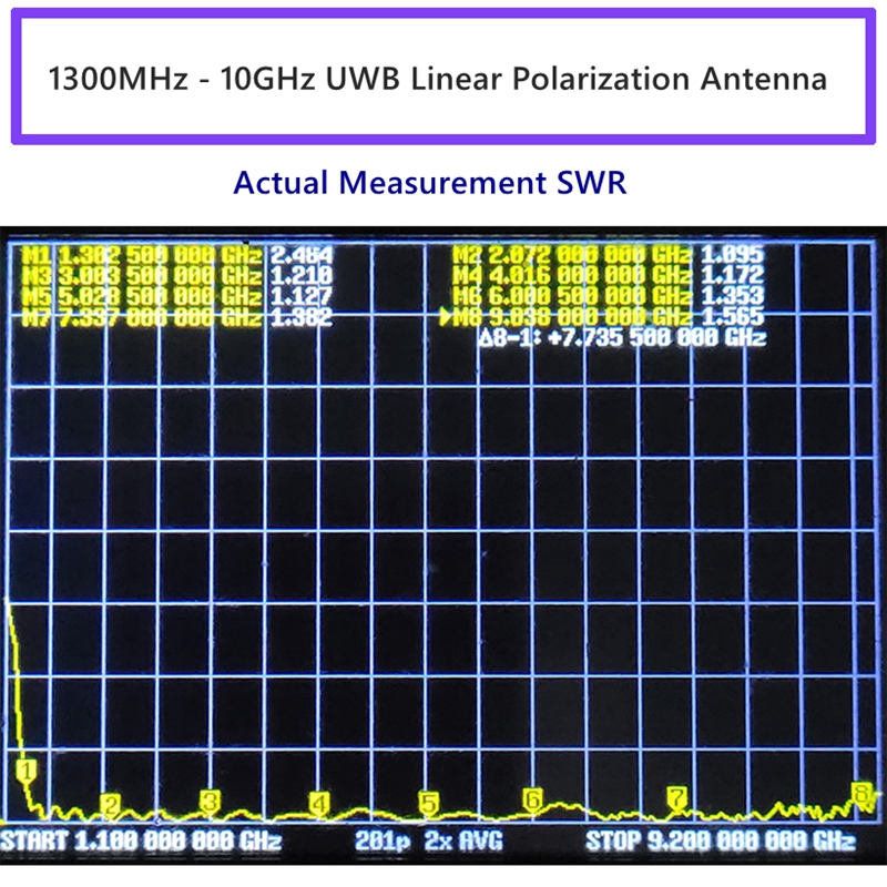 - It can provide directional gain of 6-9dBi in the frequency range of 1300MHz-10GHz. Standing waves below 1.5 provide continuous high field strength requirements for EMC testing, making it an ideal testing antenna.