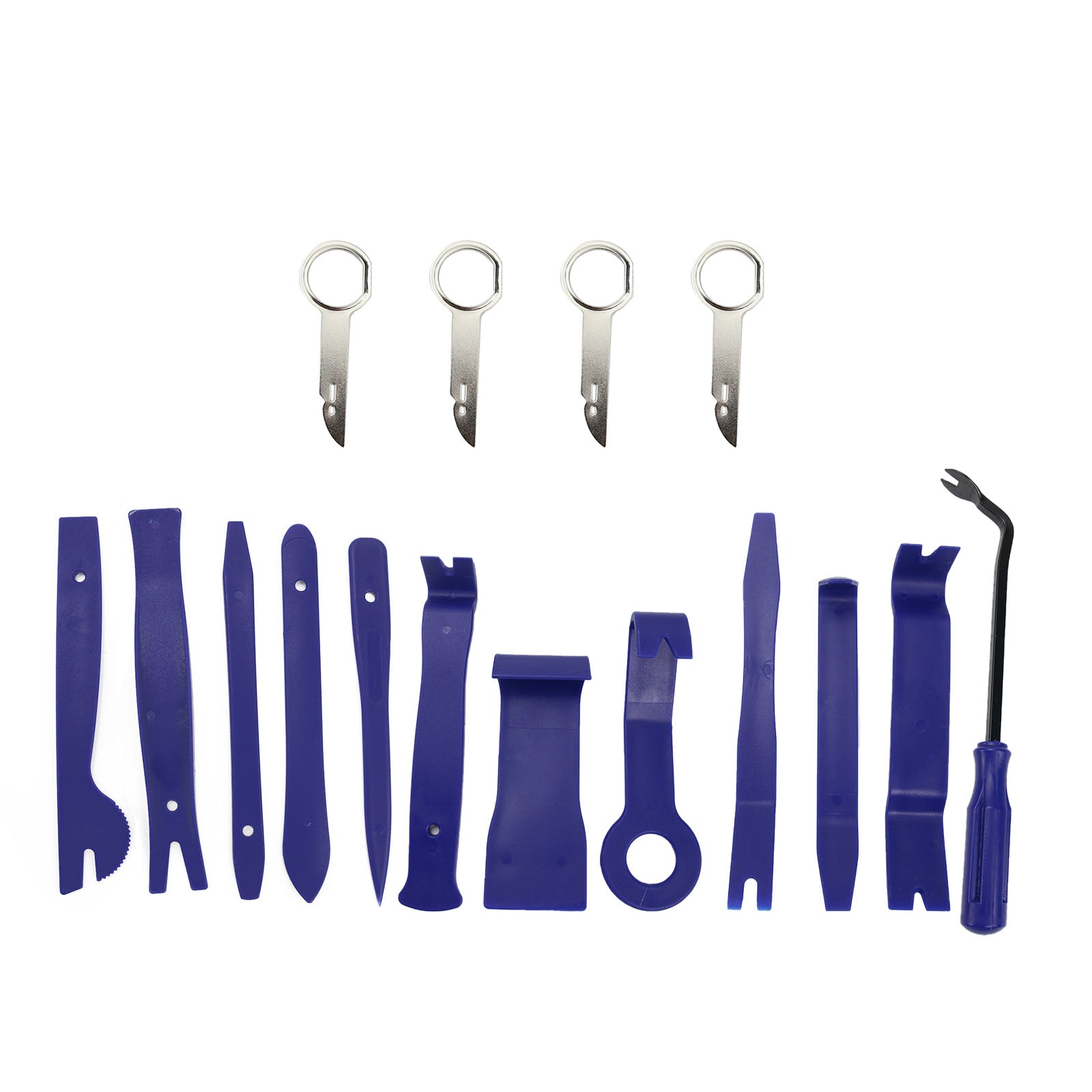 16pcs Blue Car Trim Removal Tool Set Kit for Audio System Panel Dashboard Zip-Lock Bag Packing