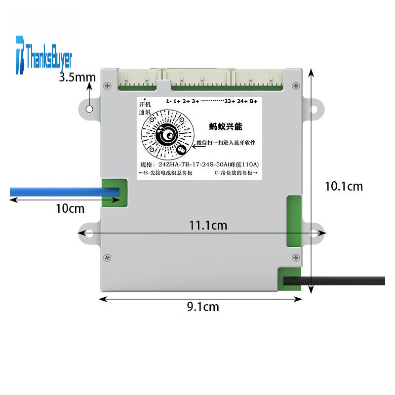 17S to 24S 50A (Peak 110A) Lithium Battery Protection Board + 3.8" LCD for Electric Vehicle Battery