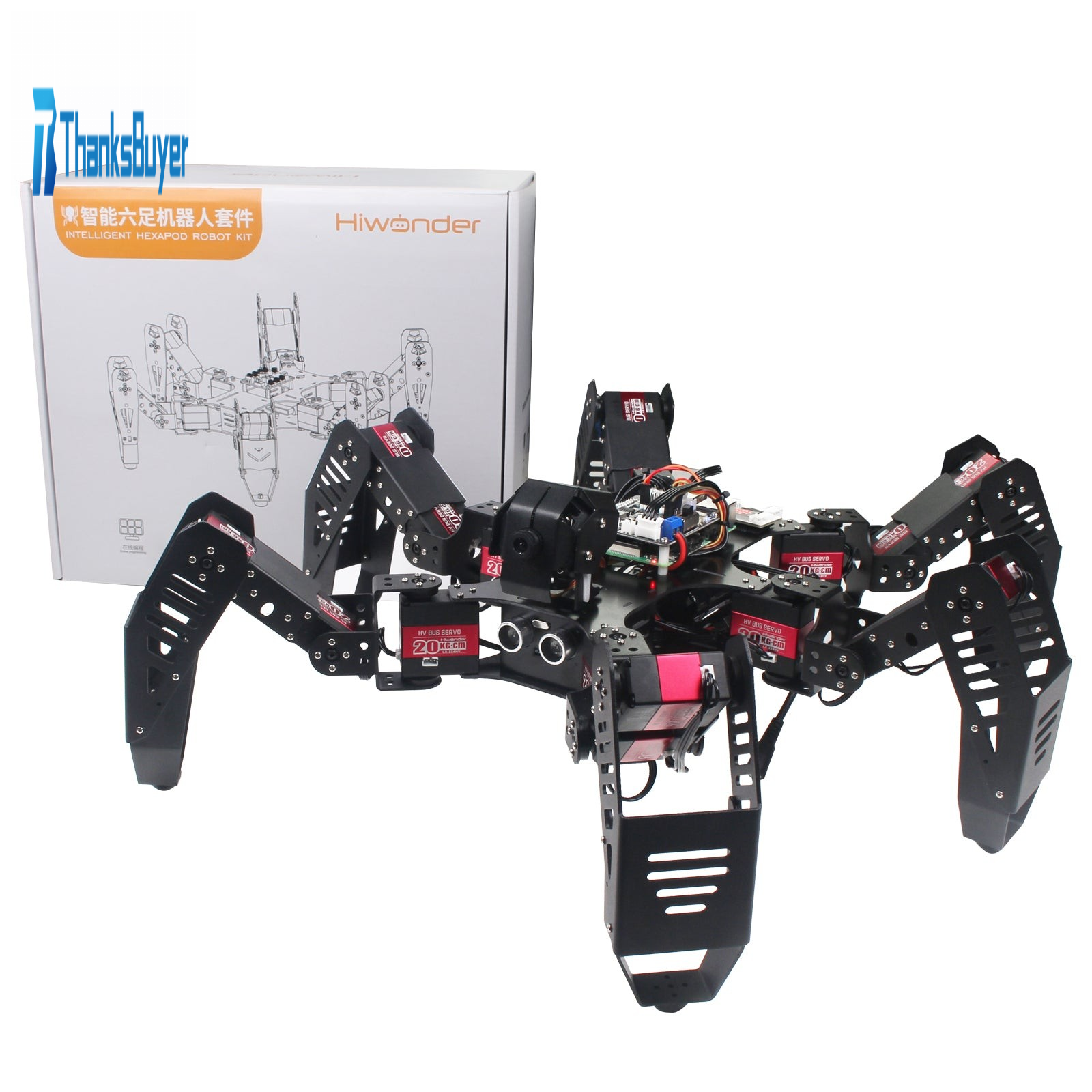 18DOF Hexapod Robot Spider Robot 2DOF PTZ with Main Board for Raspberry Pi 4B/1G Finished