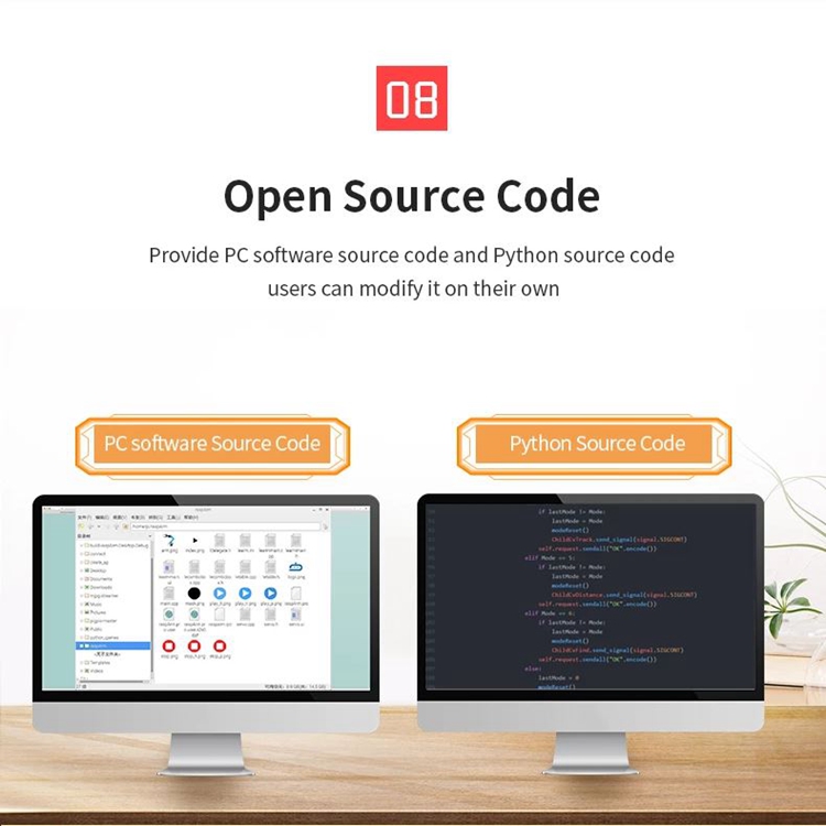 - Detailed materials and source code for robot are provided together with using tutorials.