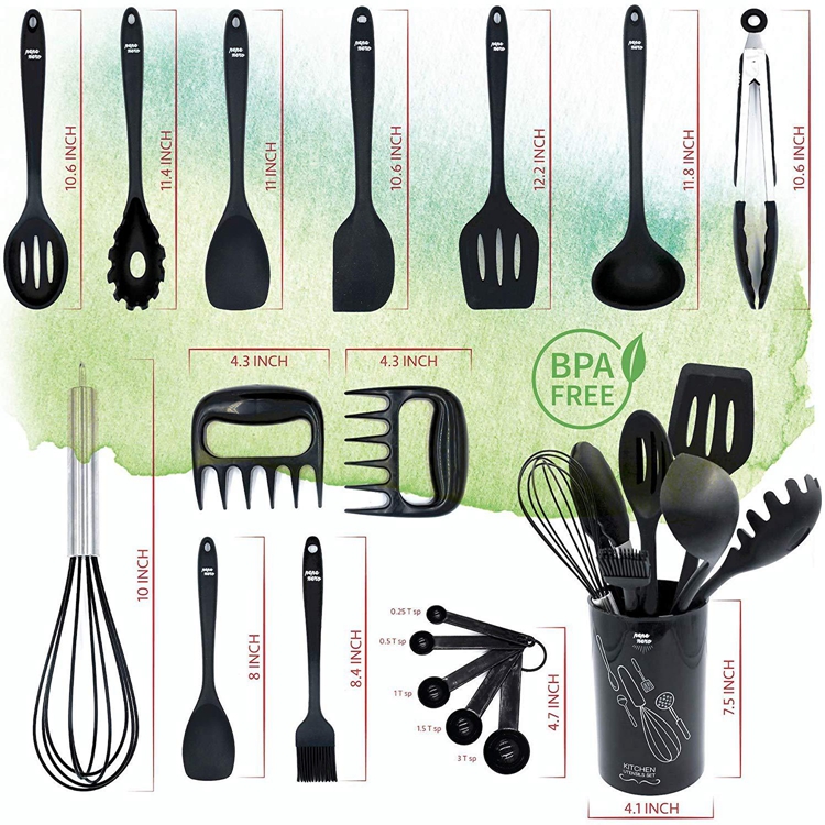 18pcs/Set Silicon Cooking Utensil Set with Holder Silicone Kitchenware Set with Gift Box