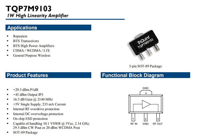 1GHz 1W Power Amplifier Board TQP7M9103 with Heat Sink for BTS Transceivers CDMA/WCDMA LTE