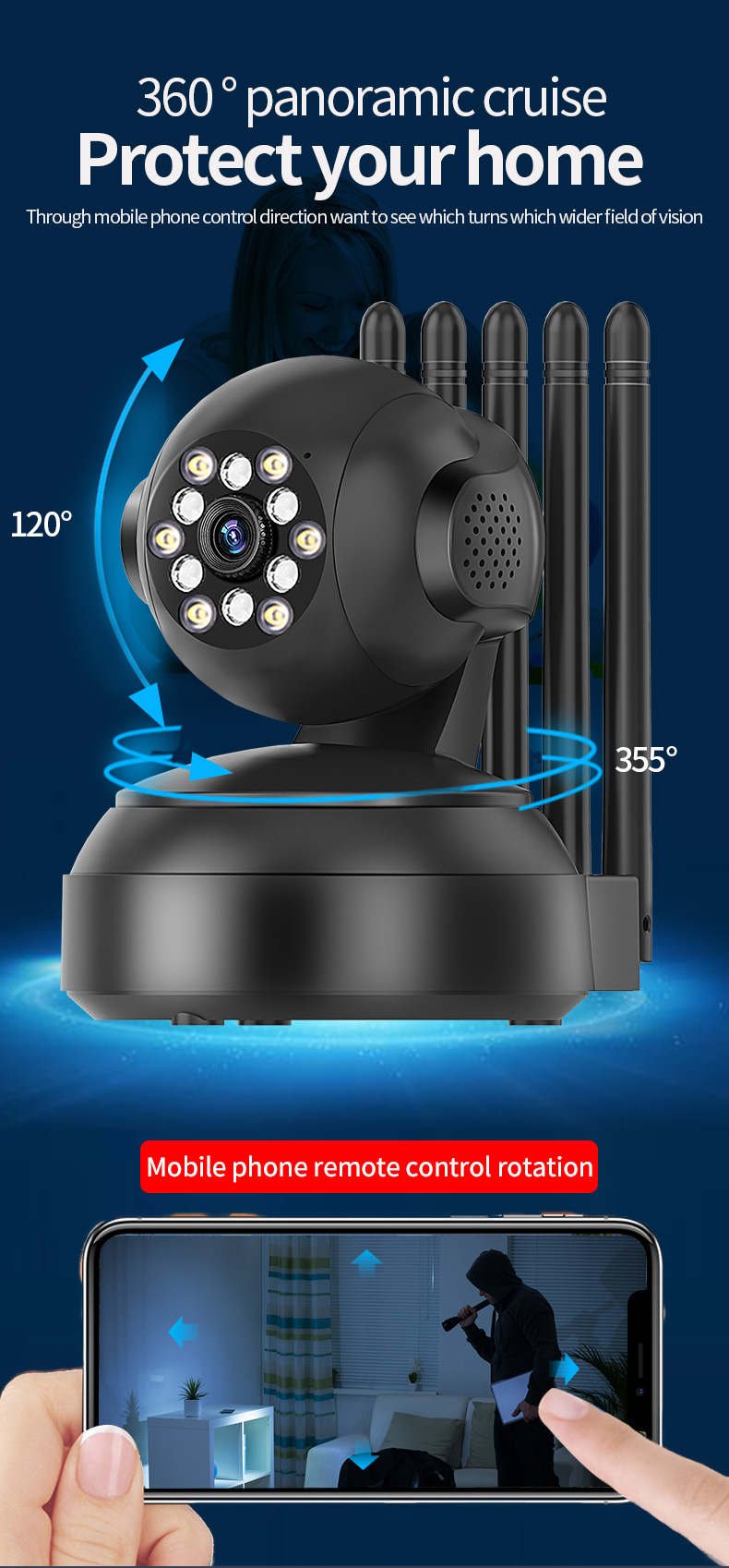 - PTZ control: Horizontal rotation 355 degrees, vertical 120 degrees