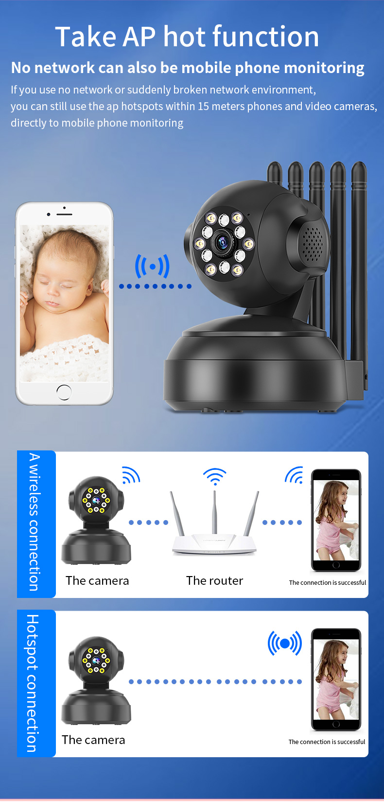 1MP 720P Wifi Camera PTZ Camera Home Wireless Security Camera Night Version EC115-Y13 Black