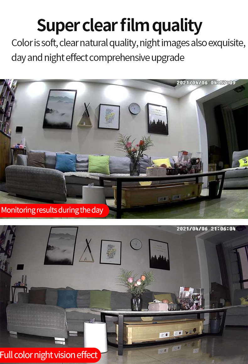 - Infrared night vision effect: 6pcs ir lights, night vision 10m/32.8ft; power consumption 1W; Control the ir light and IR-CUT switch through photoresistance