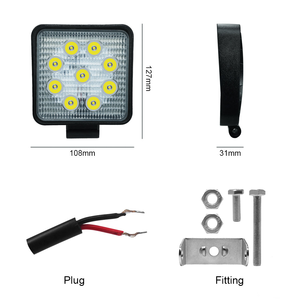 1pc 27W 2700LM Off-road Spotlight LED Work Light for Truck Jeep ATV SUV Boat Yacht