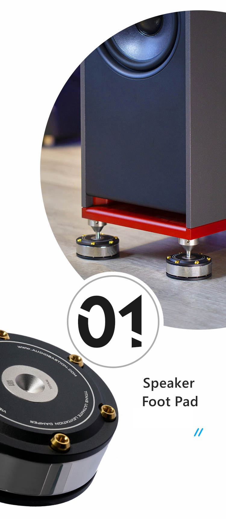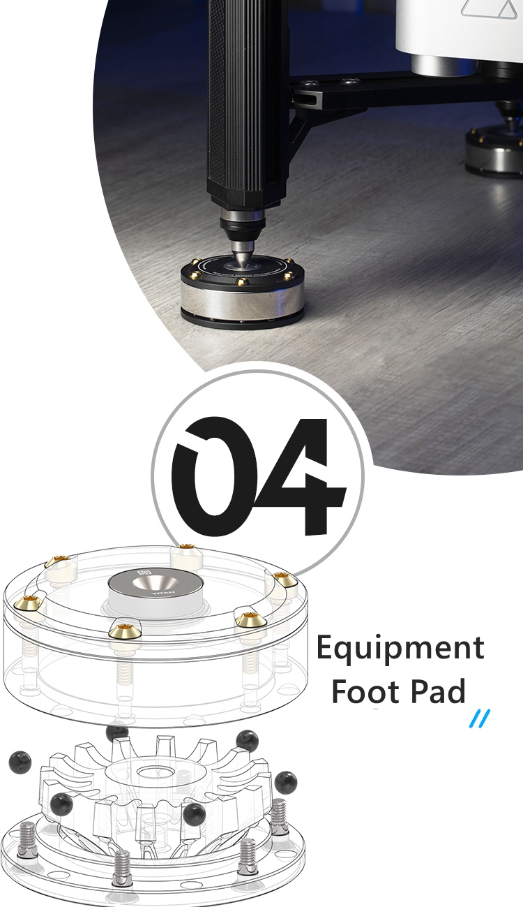 - Made from polished Stainless Steel, Titanium Alloy GR5, T6061 Aluminum, and Silicone Cushion to accurate tolerances. TITAN is designed to look great while also significantly reducing vibration in all hi-fi equipment. You will notice an immediate improvement to the sound quality with wider soundstages, clear high notes, more details, and solidity. On AV equipment a clearer crisper picture will be seen as well.