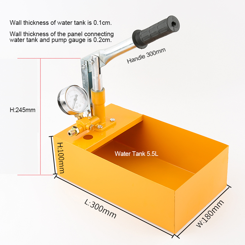 2.5Mpa Metal Manual Pressure Test Pump 25KG PPR Water Pipe Thicker Hydraulic Test Pump w/ 1/2" Hose