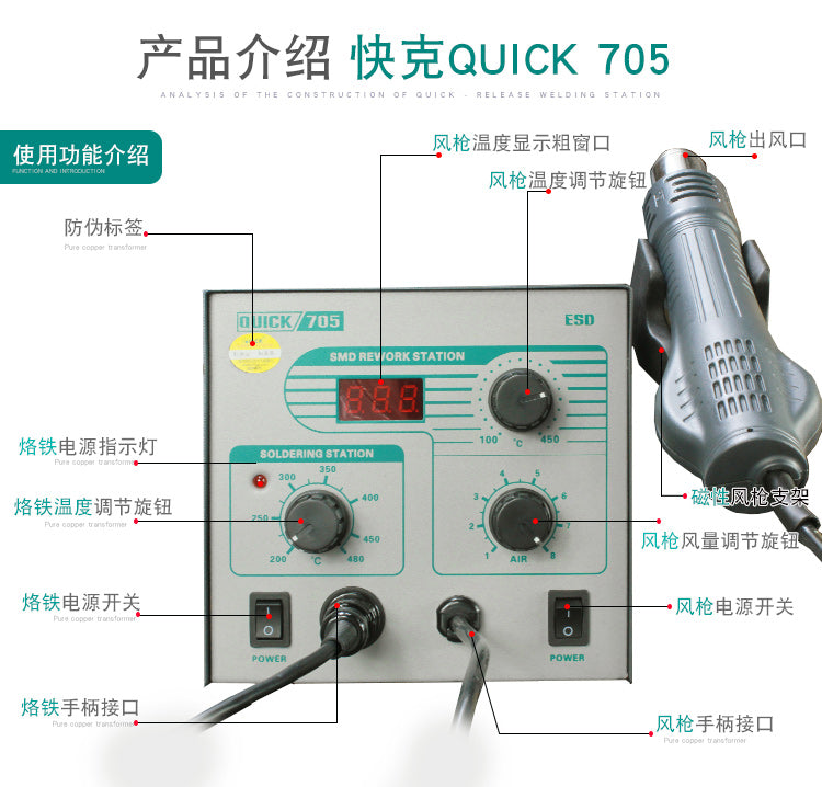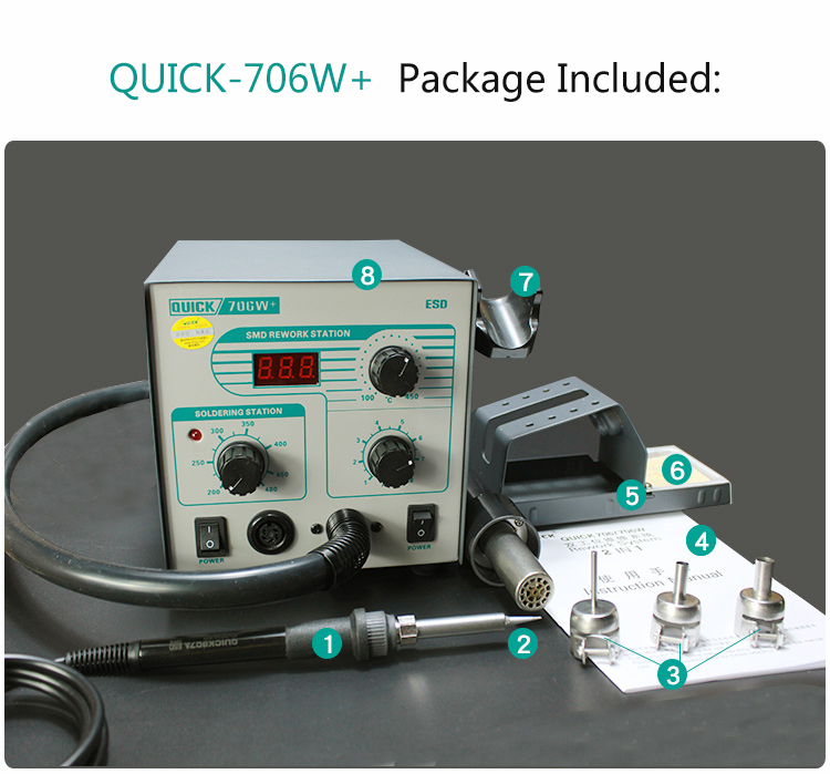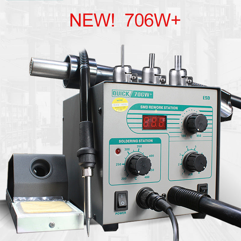 2 In 1 Hot Air Rework Station 580W Hot Air Soldering Station Digital Display + 3 Nozzles QUICK 706W+