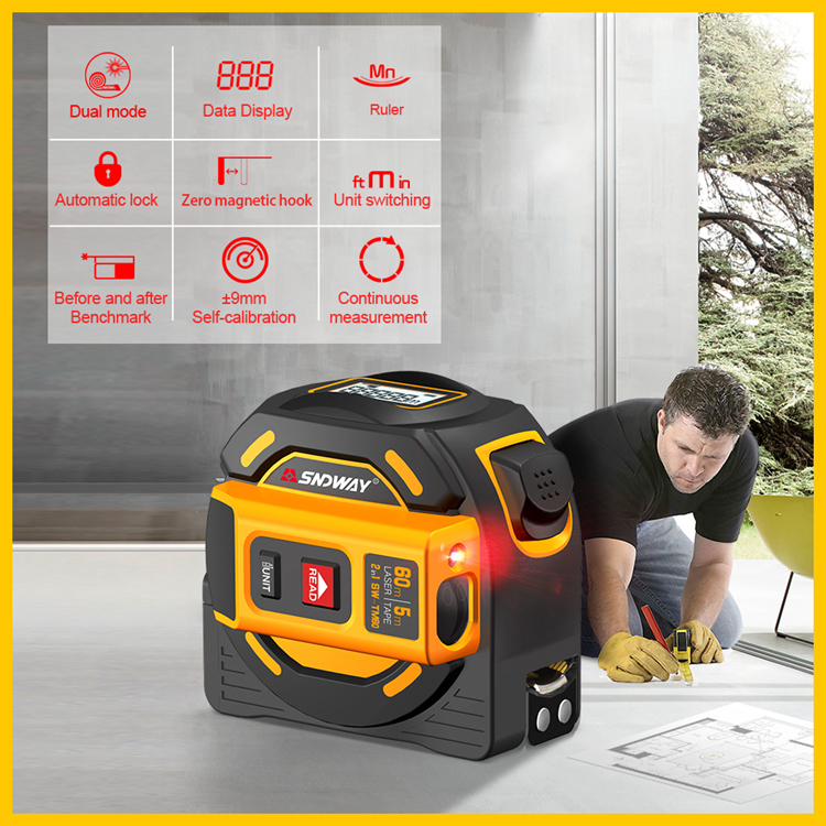 2-In-1 Laser Distance Meter 60m Laser Tape Measure Laser Range Finder Self-Locking SW-TM60