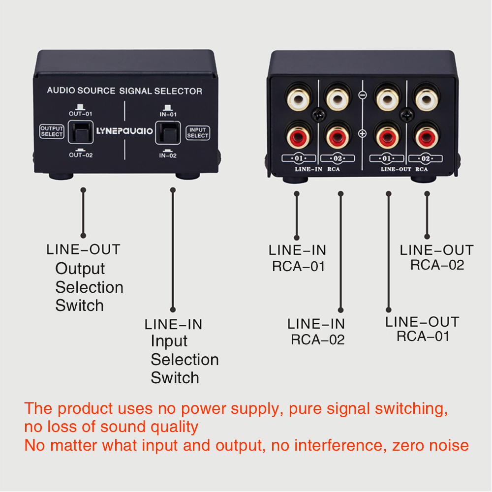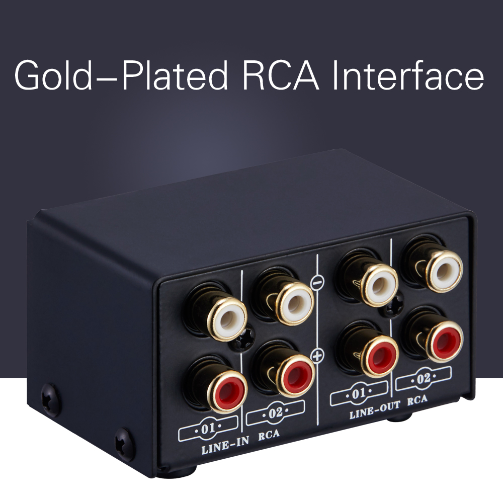 4. Standard RCA interface design for input and output, and the switch is designed with manual push-button switch of precise 2 positions.