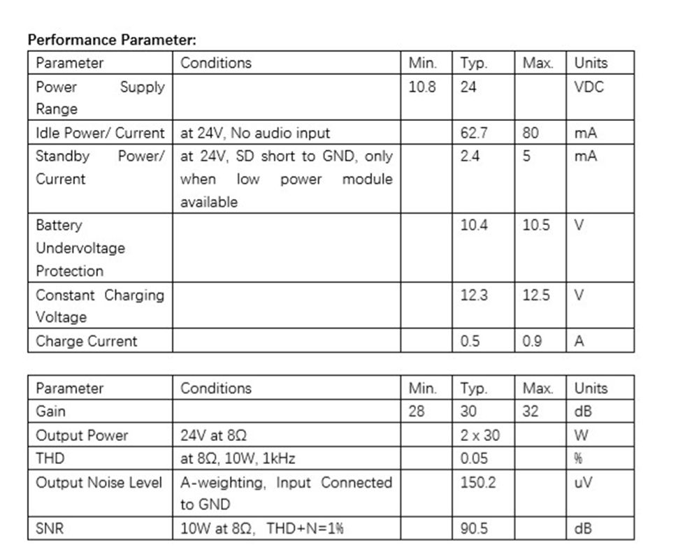 - Amplifier Board efficiency: 30W+ 30W at 8Ω