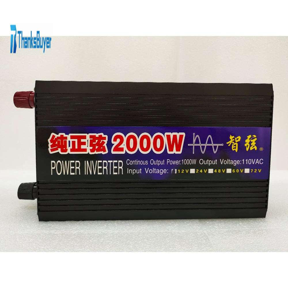 2000W Pure Sine Wave Power Inverter Input 12V Output 110V for Household Appliances Outdoor Uses