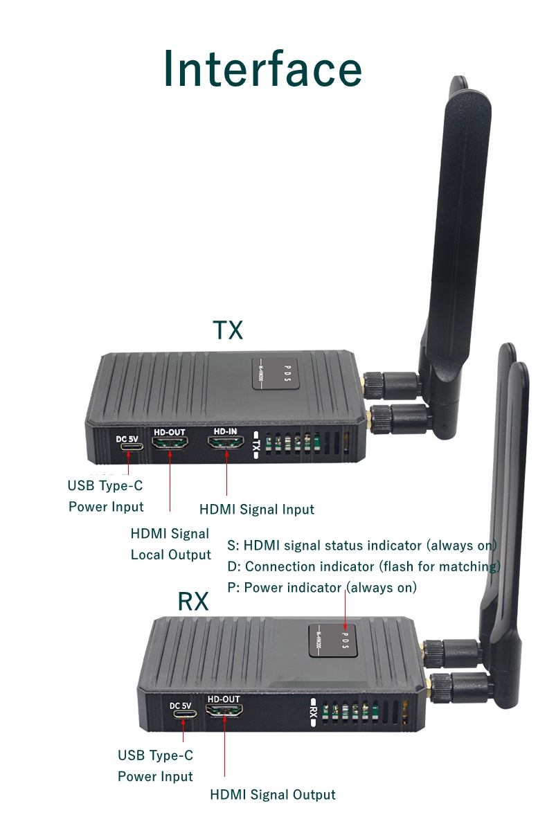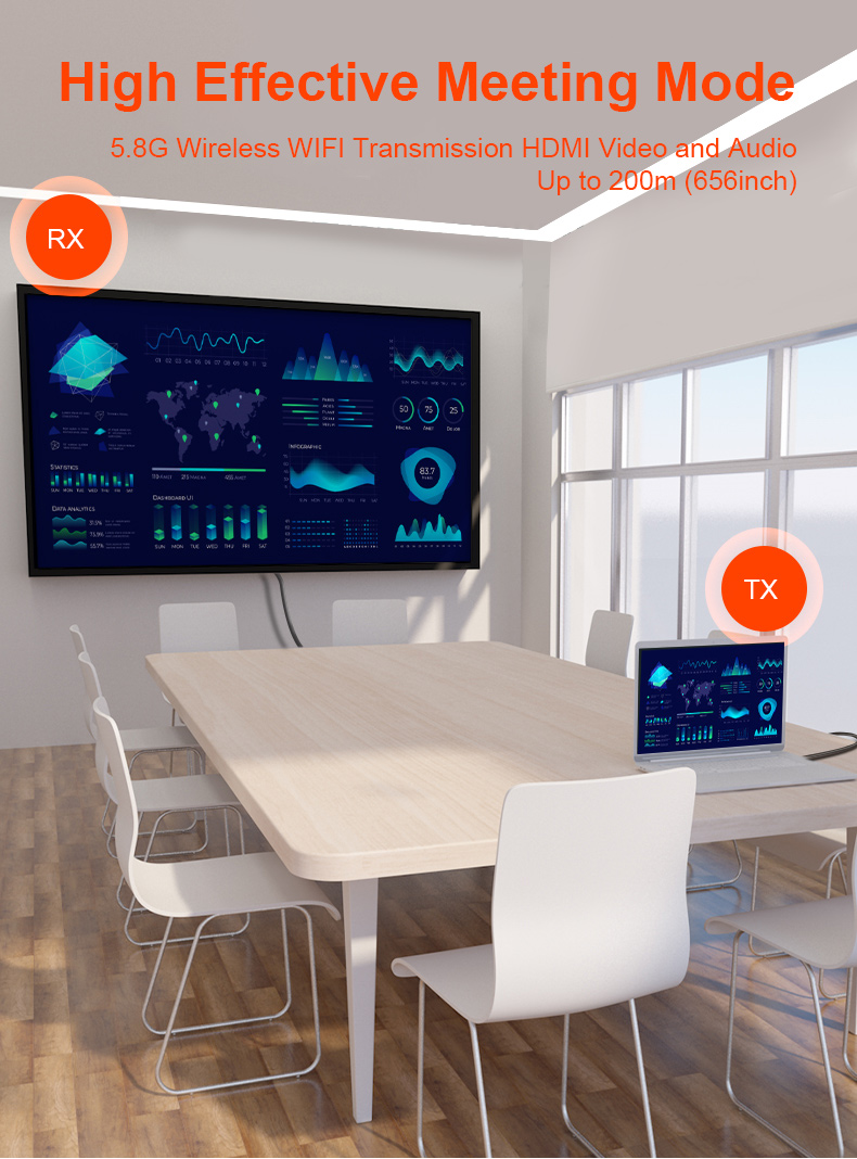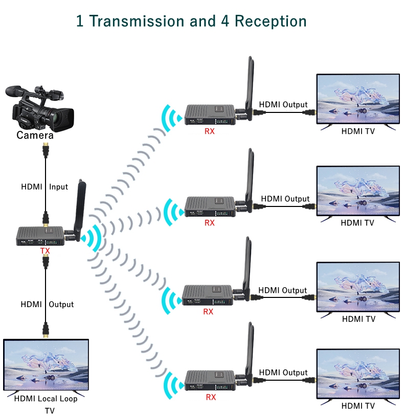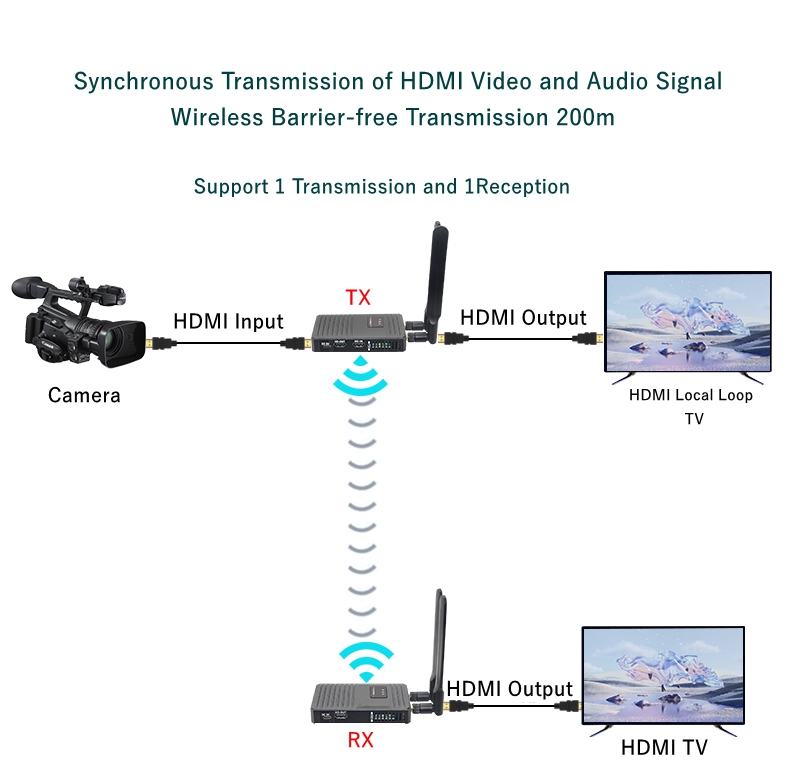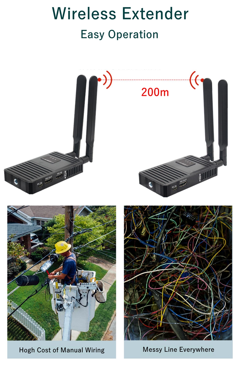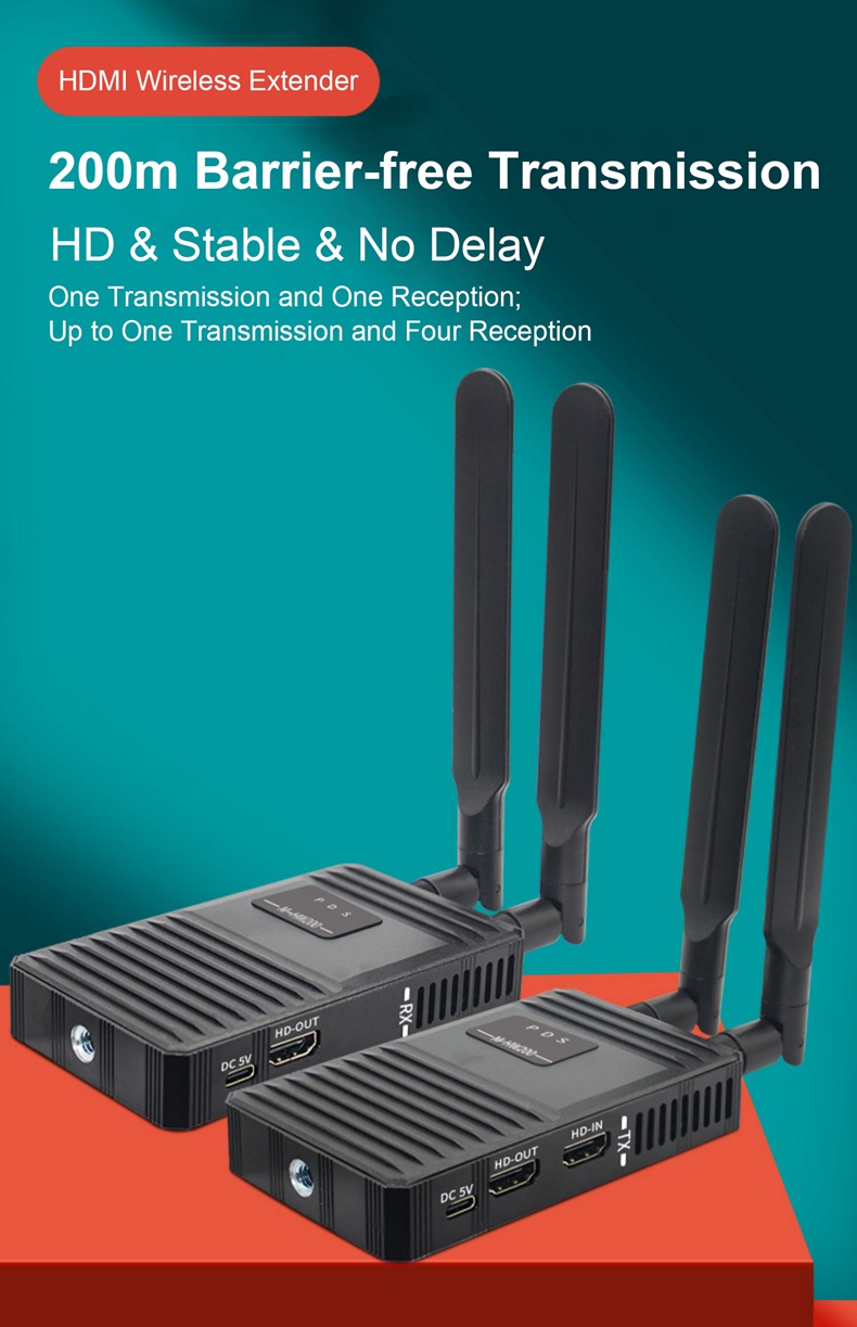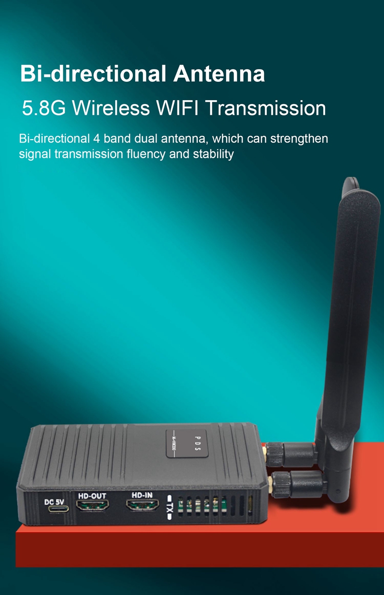 200M Dual Antenna 5.8G Wireless Transmission HDMI Extender One Receiver with Low Delay and Stable Transmission
