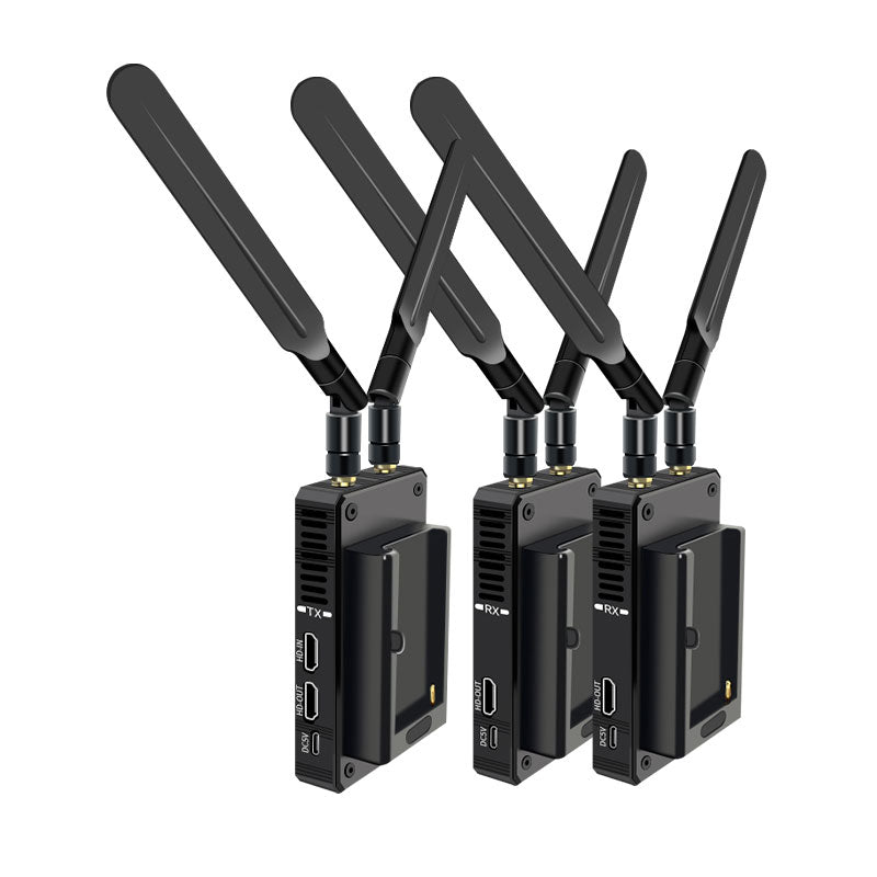 200M PRO Upgrade Version Dual Antenna 5.8G Wireless Transmission HDMI Extender One TX and Two RX with Battery Back Buckle