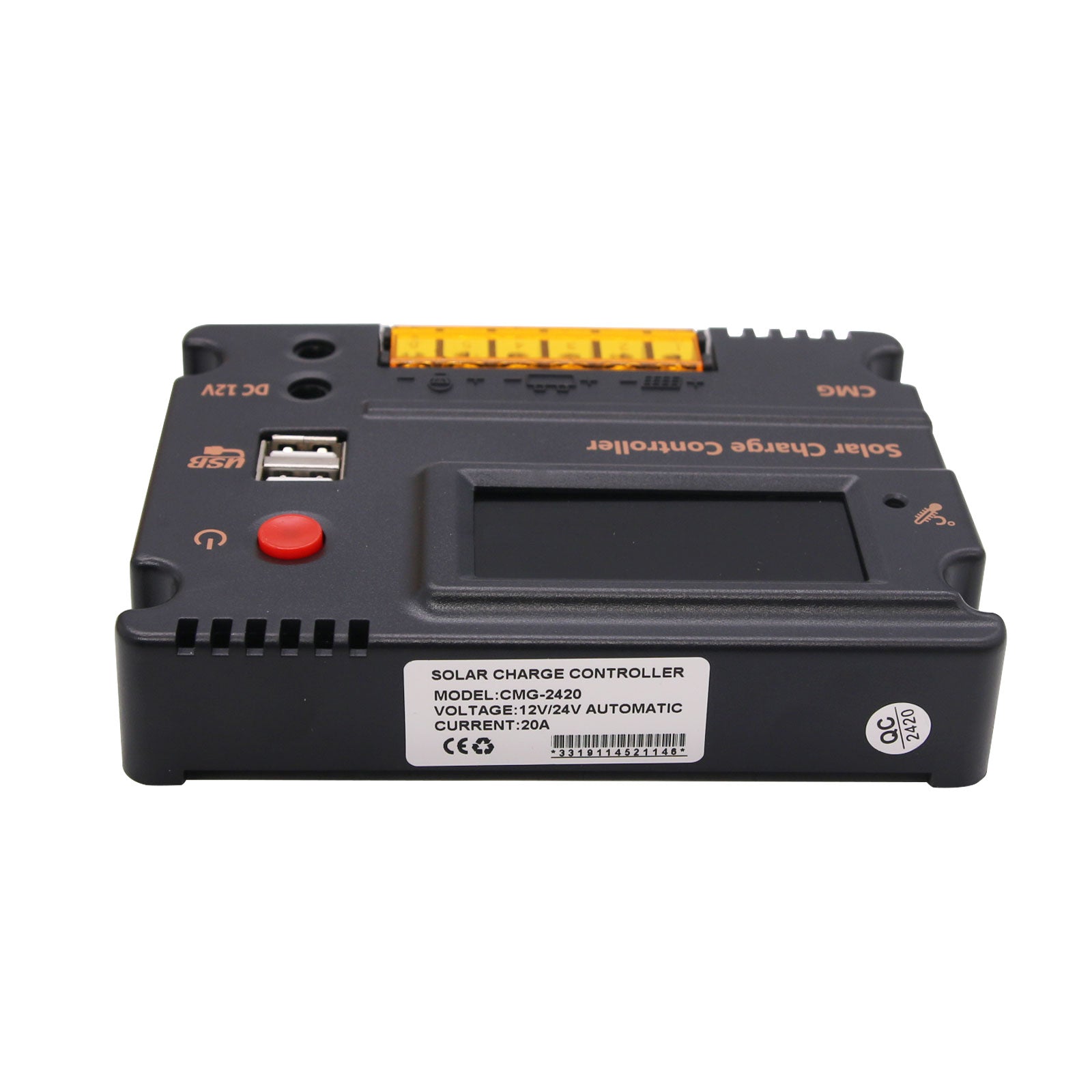 20A Solar Charge Controller Solar Panel Battery Regulator Auto Switch Solar Controller Temperature Compensation 12V/24V
