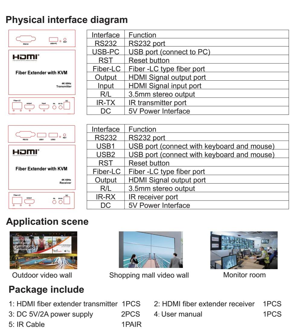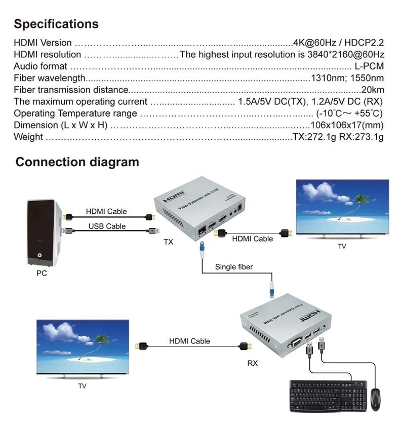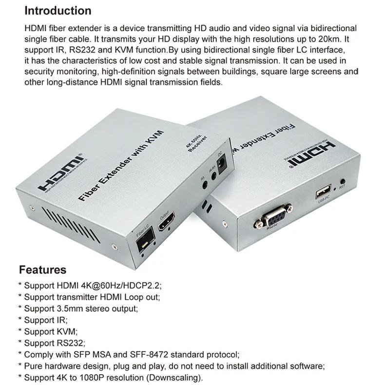 20KM HDMI-compatible 4K High Definition KVM Extender Optical Fiber Extender Support Local Loop