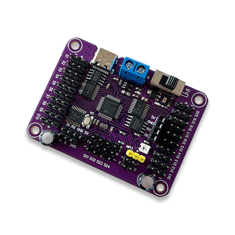 - Can control 24 servos at the same time, ensuring high precision (1us)