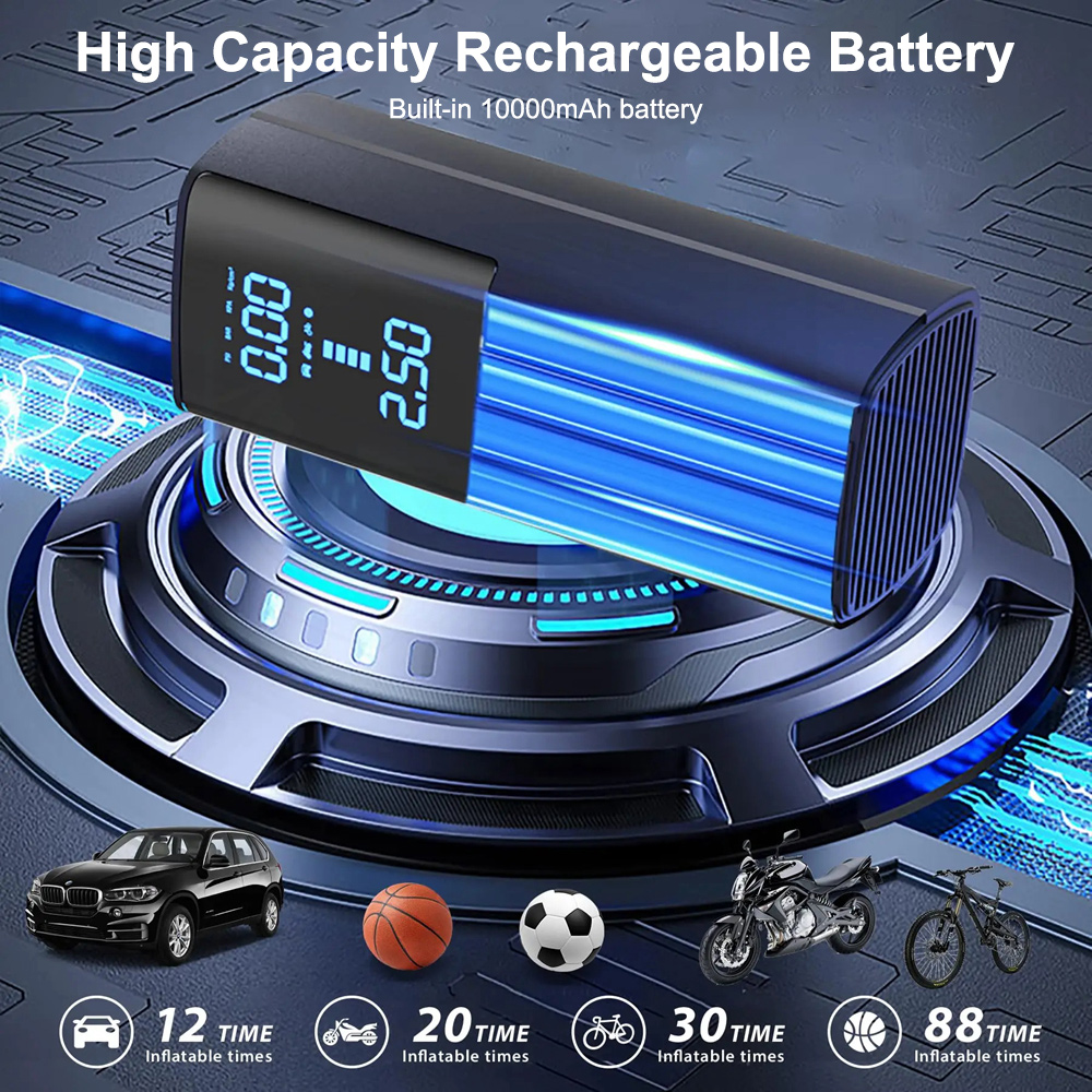 25L/min 10000mAh Inflator Pump Cordless Tire Inflator Tire Pump for Cars Motorcycles Bikes and Balls