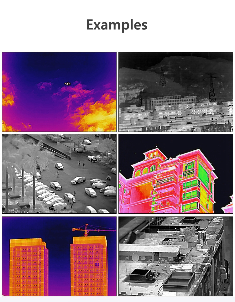 - Color palette: Rainbow/Hot metal/White hot/Black hot/Yellow saturation/Bird watching
