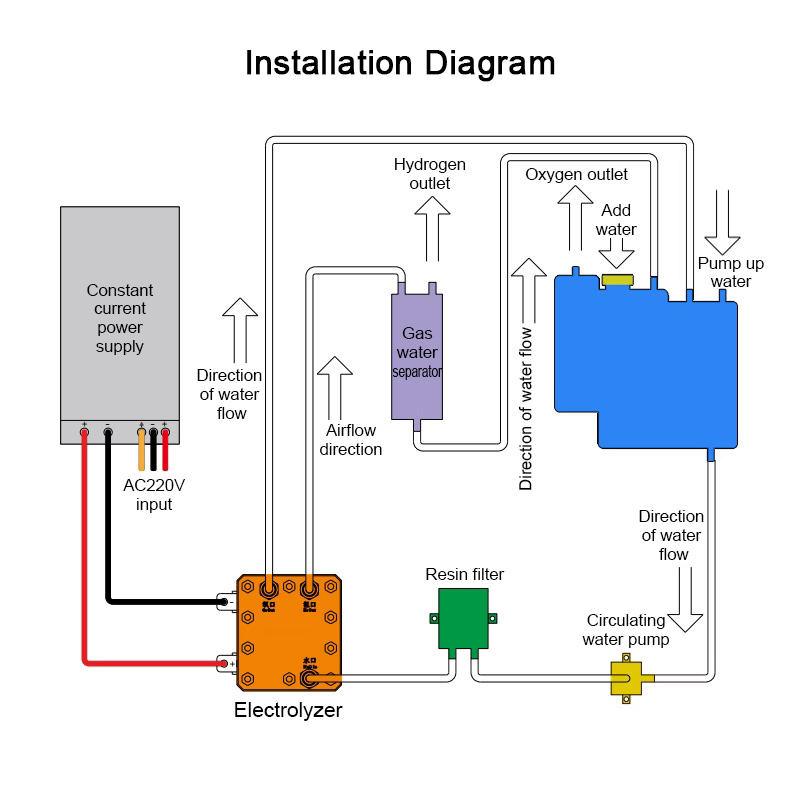 - When using, please ensure that the electrolyzer is connected to water first and then to electricity. The control system should be equipped with a water cut-off automatic control function to avoid damage to the electrolyzer when there is no water but it is powered on.