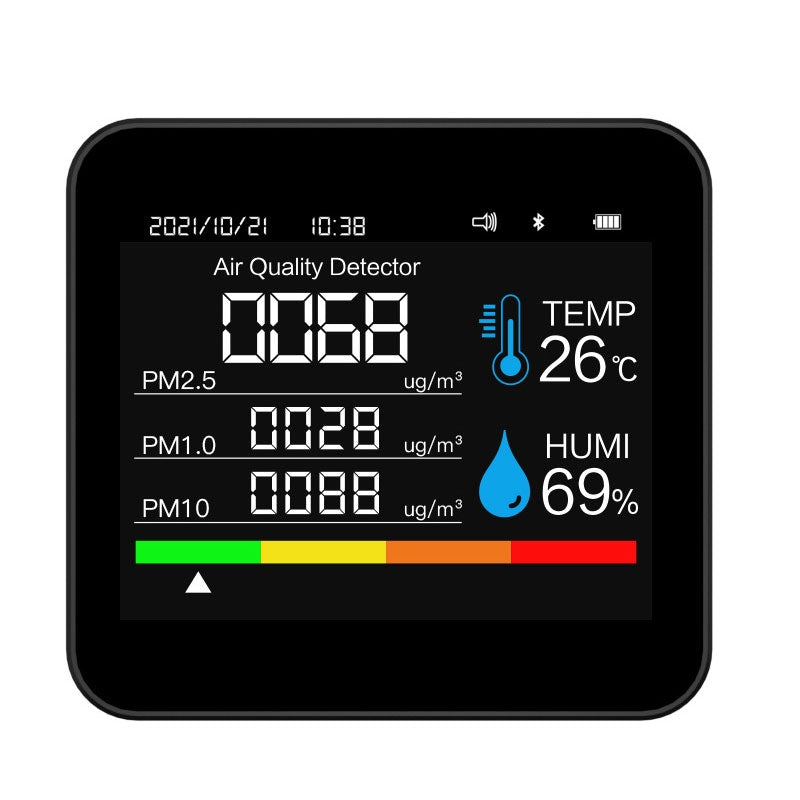 2CO11 Black 9 In 1 Air Quality Detector with Bluetooth Function for CO2 / TVOC / HCHO / PM2.5/1.0/10 Detection